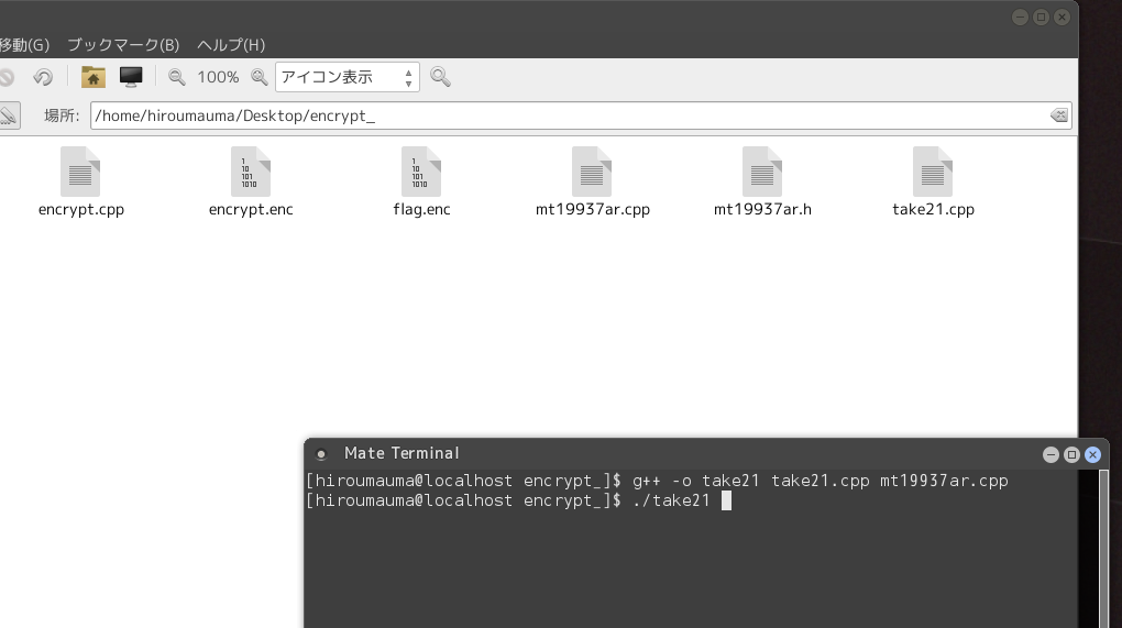 $ g++ -o take21 take21.cpp mt19937ar.cpp